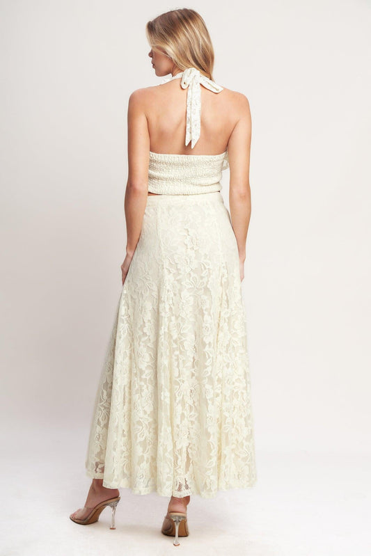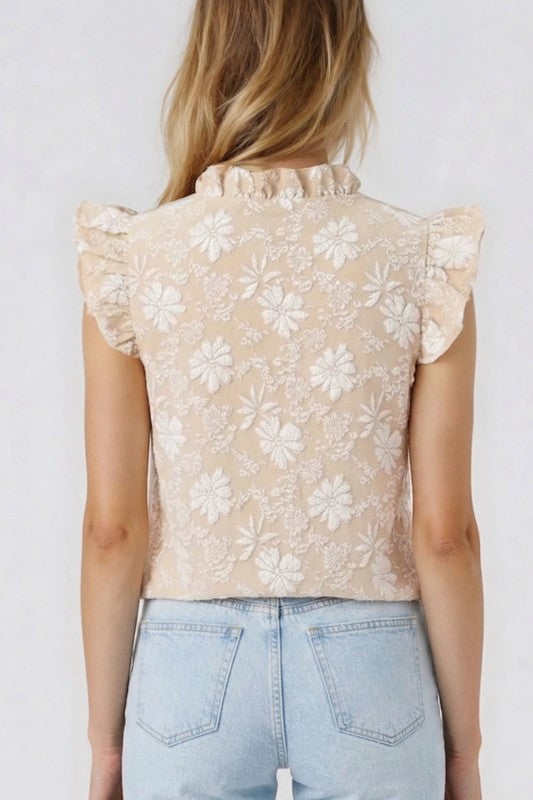 Solid Floral Lace Frilled Long Sleeve Blouse