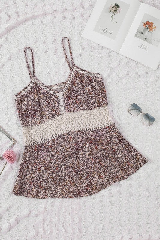 Floral Lace Crochet Spaghetti Strap Tank Top