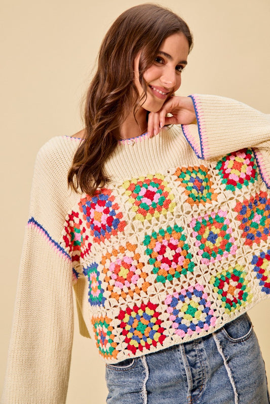 Multi Color Granny Crochet Lace Sweater Top