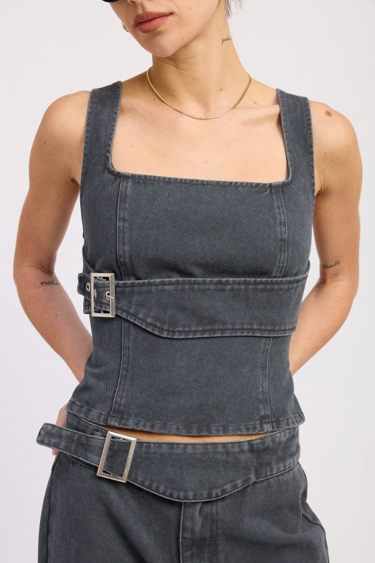 Lace-Up Fringe Hem Tank with Lace Detail