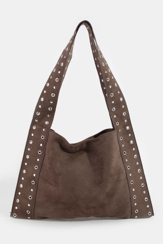 Grommet Strap Suede Shoulder Bag