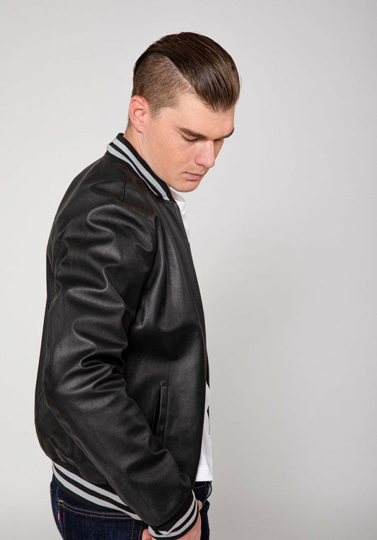 Jett Varsity Lightweight PU Faux Leather Bomber Jacket