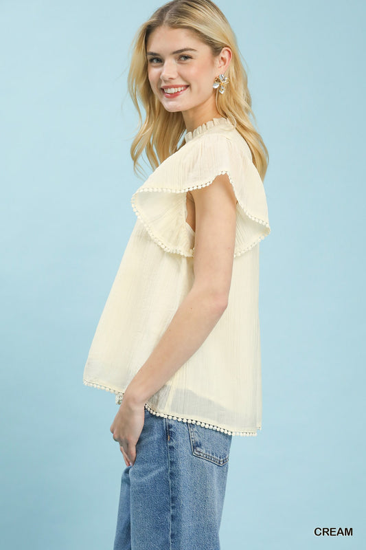 Halter Neck Sleeveless Crochet Top with Seashell & Mirror Dangle Trim