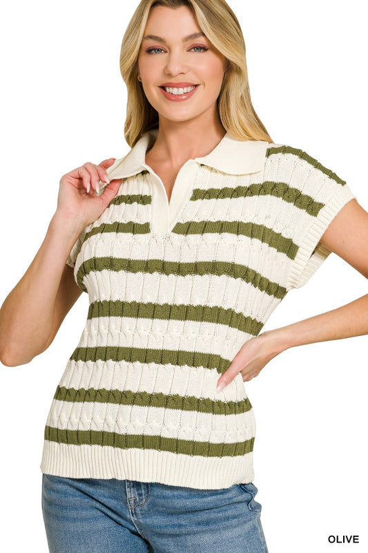 Textured Stripe Collared Sweater Vest