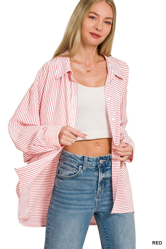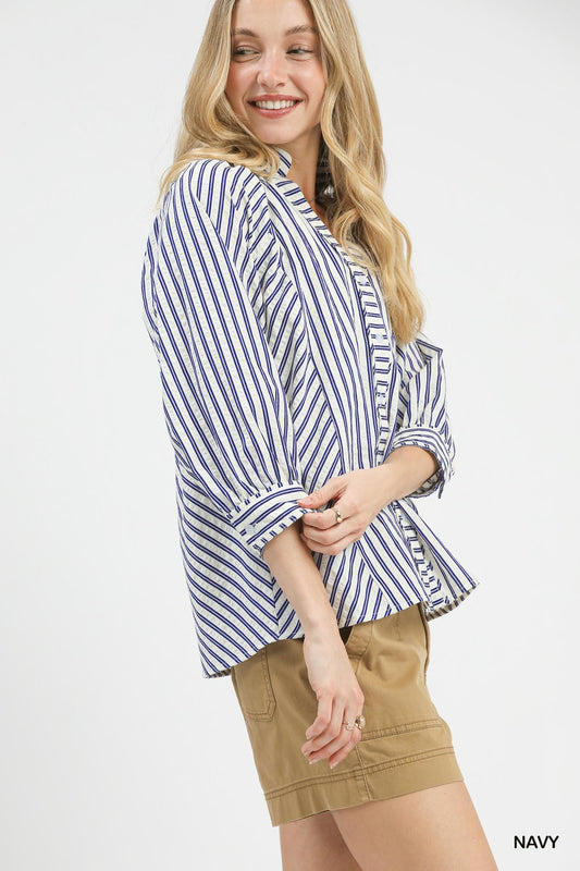 Striped V-Neck Button Down Top