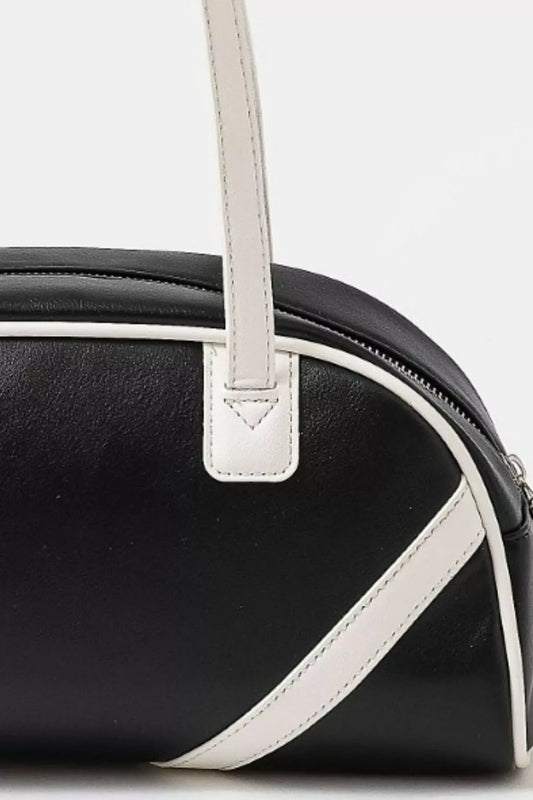 Stripe Accent Faux Leather Hand Bag