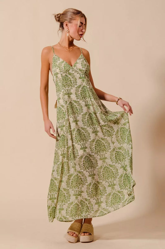 Damask Floral Summer Maxi Flowy Dress With Open Back